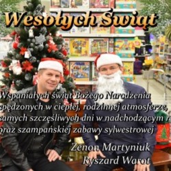 Wesołych Świąt, radości, pomyślności, miłości, szczęścia, uśmiechu, zdrowia i samych pozytywnych rzeczy życzy: Zenon Martyniuk, Ryszard Warot
